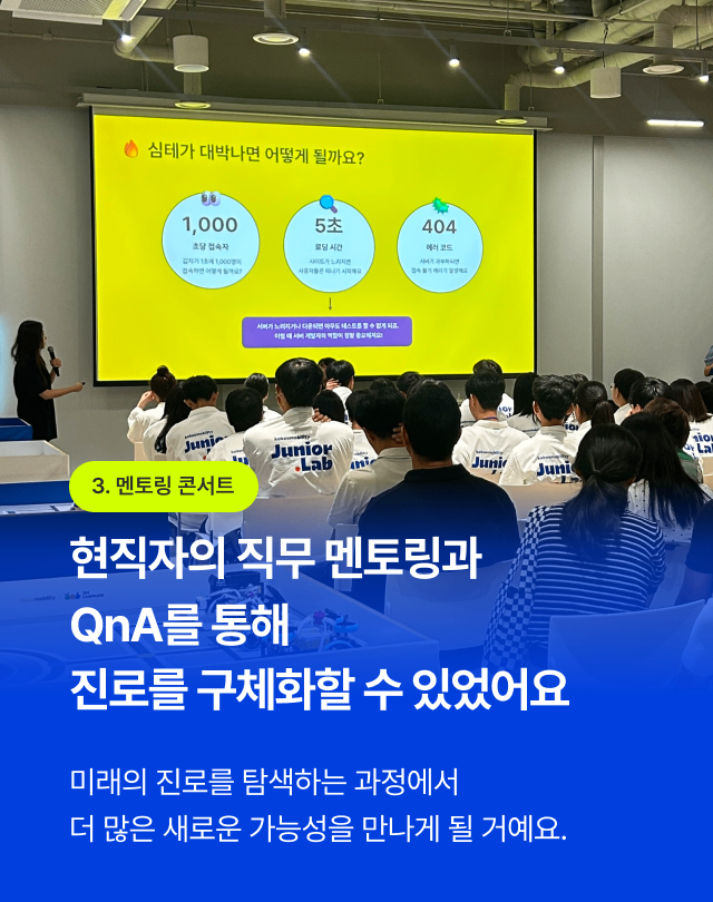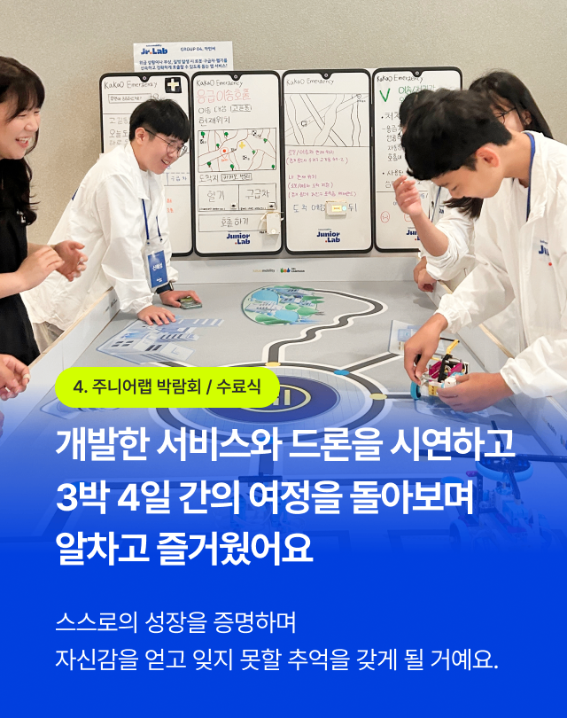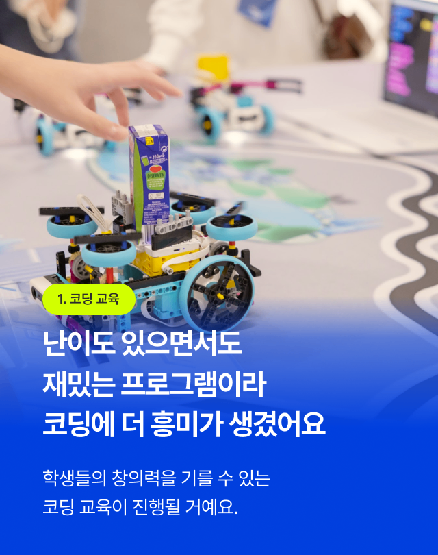 코딩 교육은 총 5차시로 구성되어 있으며, 전문 코딩 레고 교구를 활용하여 '스마트 모빌리티'를 주제로 직접 모빌리티 로봇을 기획하고 개발하게 됩니다. 수료식에는 아이들이 만든 로봇을 시연하고, 연계된 앱 기획안을 발표하는 전시회를 운영할 예정이에요.